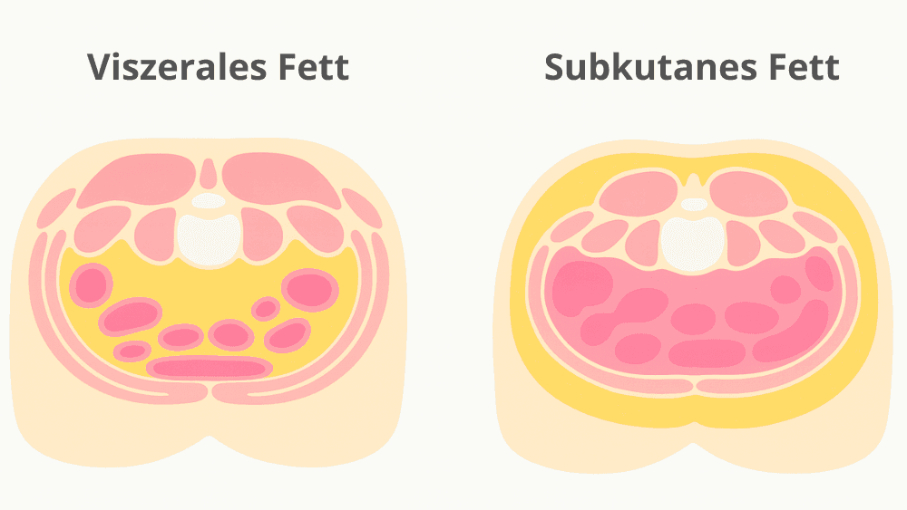 Viszerales Fett lagert sich im Bauchraum um die inneren Organe an. Subkutanes Fett liegt direkt unter der Haut und umgibt den Körper von außen.
